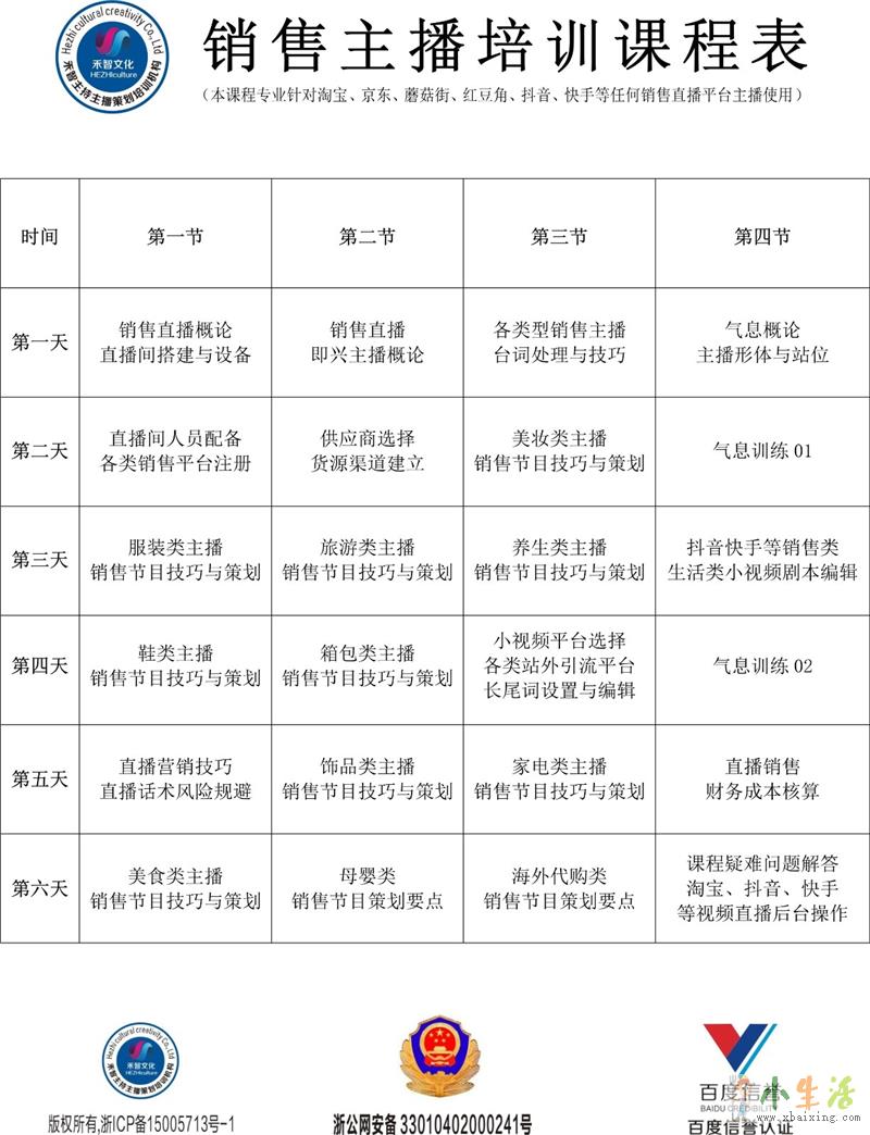 课程内容:气息发音,普通话调整,台词方法小生活网www.xbaixing.com。销售节目策划(服装类、家居类、